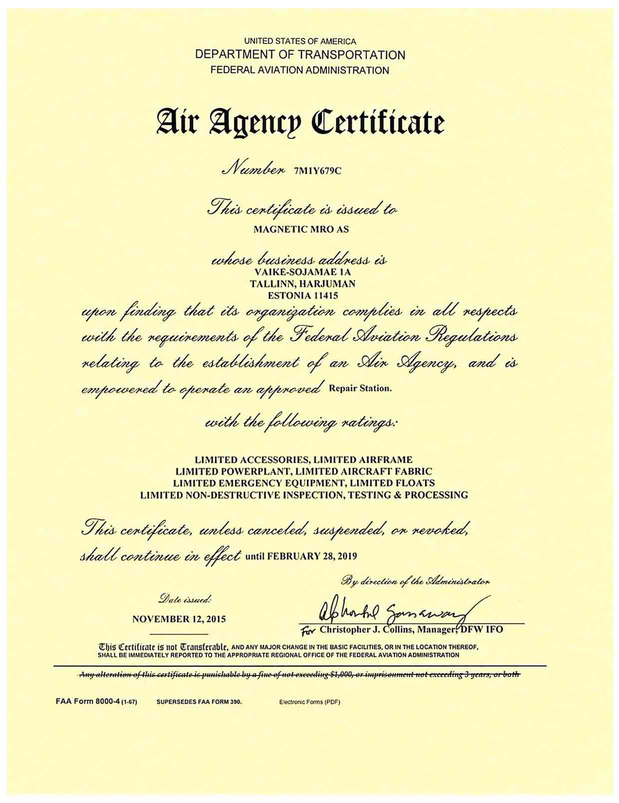 FAA Air Agency Certificat...