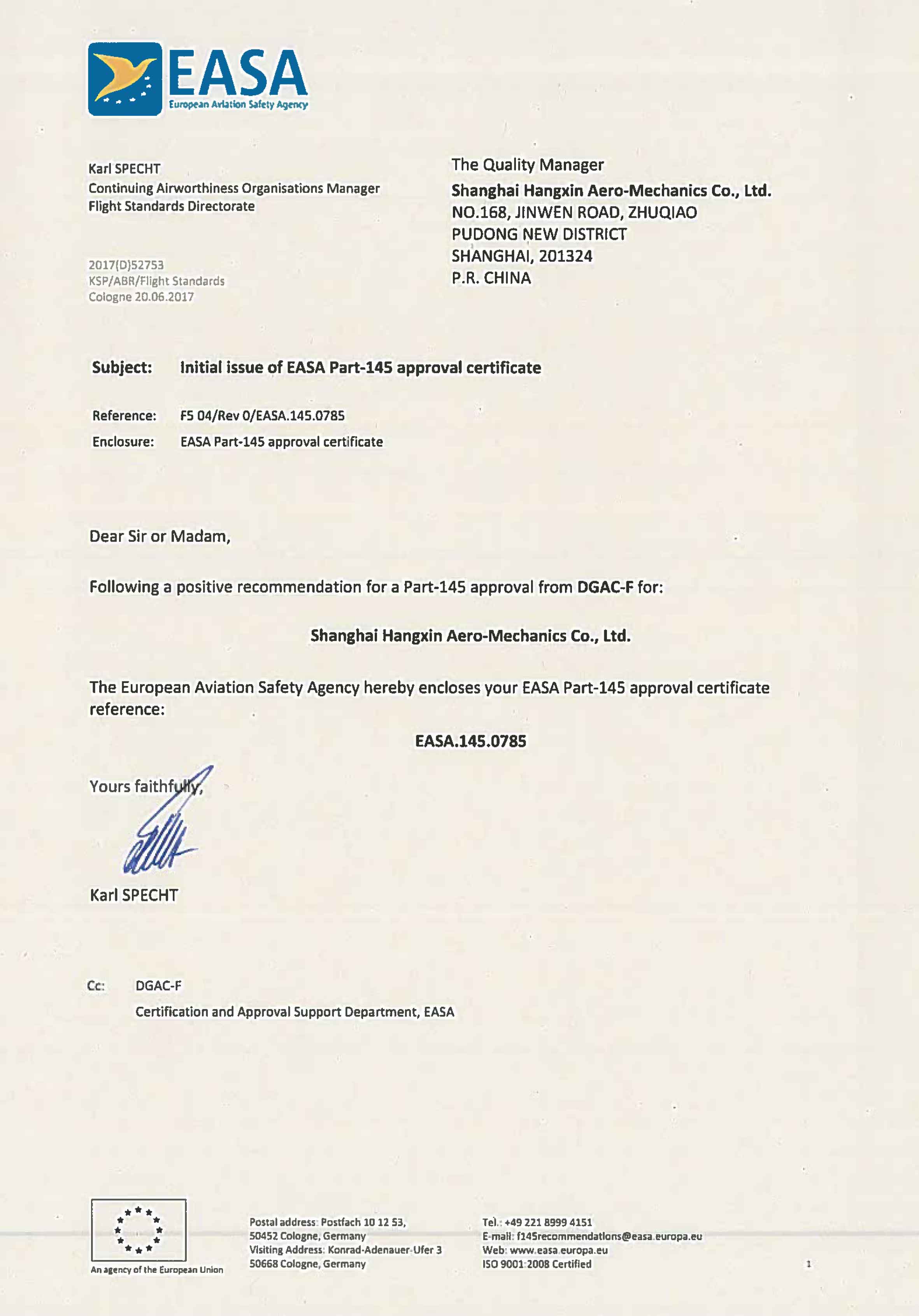 EASA Part-145 approval ce...